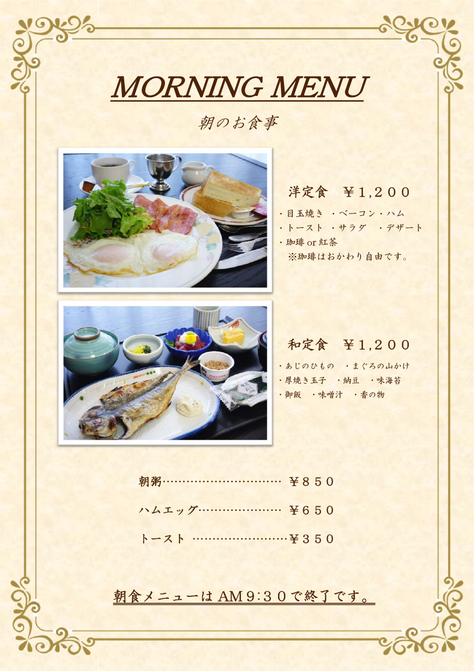 朝食メニュー